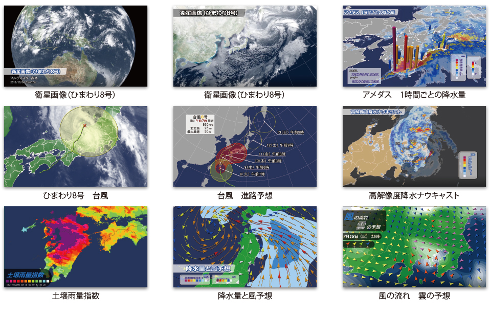 近い時間で解析、可視化します。視聴者へ時間毎の気象変化を解りやすく伝えることが可能です。